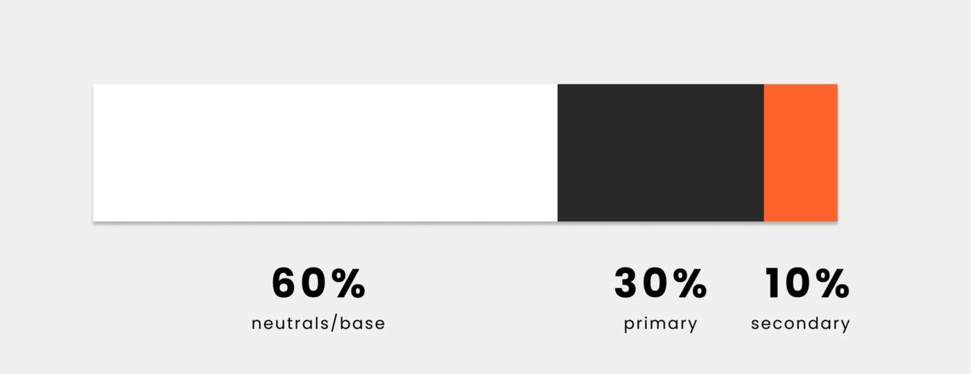 除了用什么颜色之外,还有一个必不可少的注意事项是知道怎么使用颜色。60 ,30,10原则就是一条很好的经验法则。意思是说在设计当中最多使用 60% 的基色,然后是30%的一次色,为了突出显示,可使用 10%的二次色,比方说号召行动用语(如按钮)。