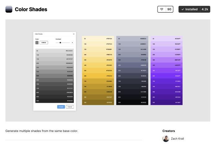 我最近发现了一个叫做 Color Shades for Figma 的神奇插件,它可以帮你创建文件里面所有的颜色暗调,非常棒。