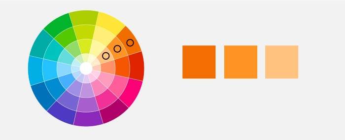 这种做法是选择彼此相邻的颜色。你可以朝着顺时针或逆时针的方向任意移动。选出来的颜色需要在 90 度角的范围之内内,如此应该就得到一个很好的结果。这种做法可以在不失优雅的情况下增加一点活力。
