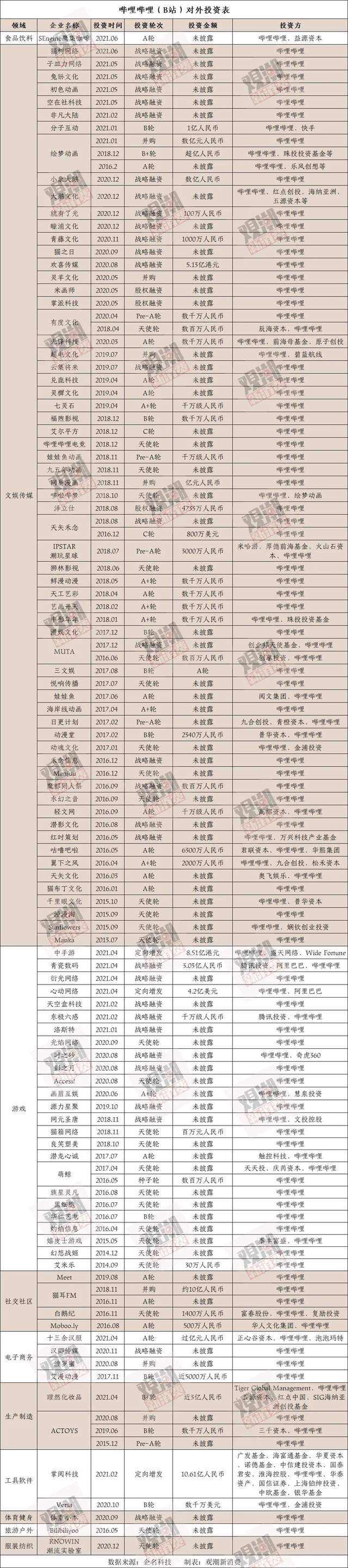观潮新消费(ID:TideSight)根据网络公开数据不完全统计,从成立至今,B站在大消费领域已完成了110笔投资。2020年,B站对外投资26起。领域涉及游戏、电竞、影视、动漫、汉服、音乐、咖啡、虚拟偶像等等。