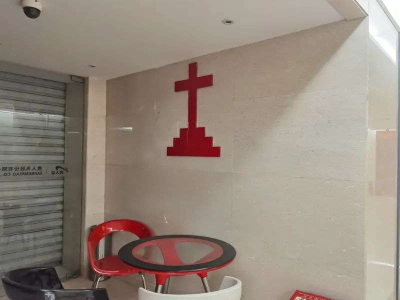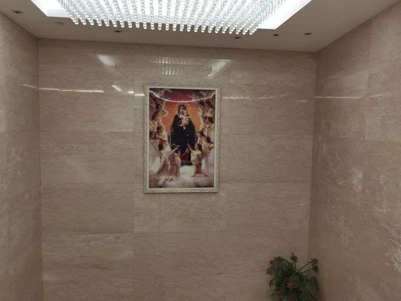 在贵人鸟的办公楼里,也可以看到圣母玛利亚的画像,以及十字架的装饰。