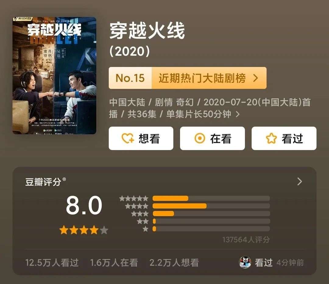 但在《亲爱的,热爱的》之后,再没有出现同等热度的剧集。2020年7月,由鹿晗、吴磊主演的《穿越火线》上线,该剧脱胎于国内著名FPS游戏《穿越火线》,上映后得到了豆瓣8.0的高分,达到了电竞剧中的口碑巅峰,但上映近一年,播放量仍然不到20亿,叫好不叫座。