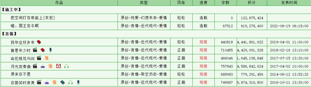 在青浼的晋江文学网作者专栏中可以看到,其包括《你微笑时很美》《月光变奏曲》等在内的数部小说都已完成IP签约,将进行影视剧、漫画、游戏等一系列改编。
