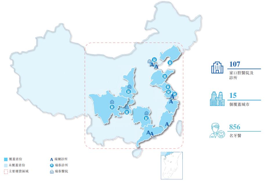 截至2021年3月31日,瑞尔集团在中国15个主要一二线城市运营107家医院和诊所,提供中高端口腔护理服务,拥有856名经验丰富的牙医。
