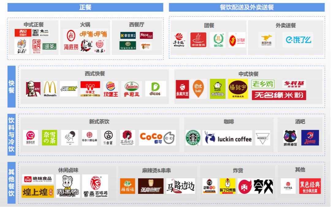 根据我国《国民经济行业分类》(GB/T—2017),餐饮业是指通过即时制作加工、商业销售和服务性劳动等,向消费者提供食品和消费场所及设设施的服务,包括正餐、快餐、饮料及冷饮(茶馆、咖啡馆、酒吧和其他饮料及冷饮服务)、餐饮配送及外卖送餐和其他餐饮(小吃、其他未列明餐饮业)共计5类服务。
