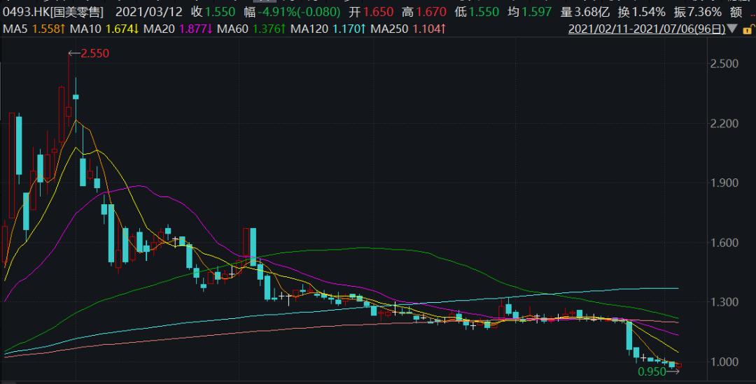 1个月里,国美零售股价从6月1日开盘价1.25元,跌至7月2日收盘价0.99元,跌幅在20%以上;格力电器股价则从6月1日开盘价56.3元,跌至7月2日收盘价50.99元,跌幅9%。