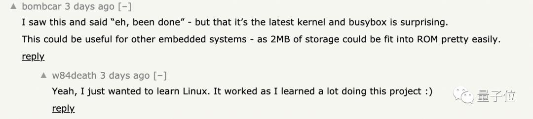 而在Hacker News 论坛上很多人纷纷对小哥竖起大拇指,有人表示最令他惊讶的就是用的最新版的Linux内核和BusyBox。而且这对其他嵌入式系统也很有用。