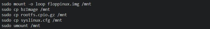 Mount it !并将syslinux、内核和文件系统复制到软盘映像: