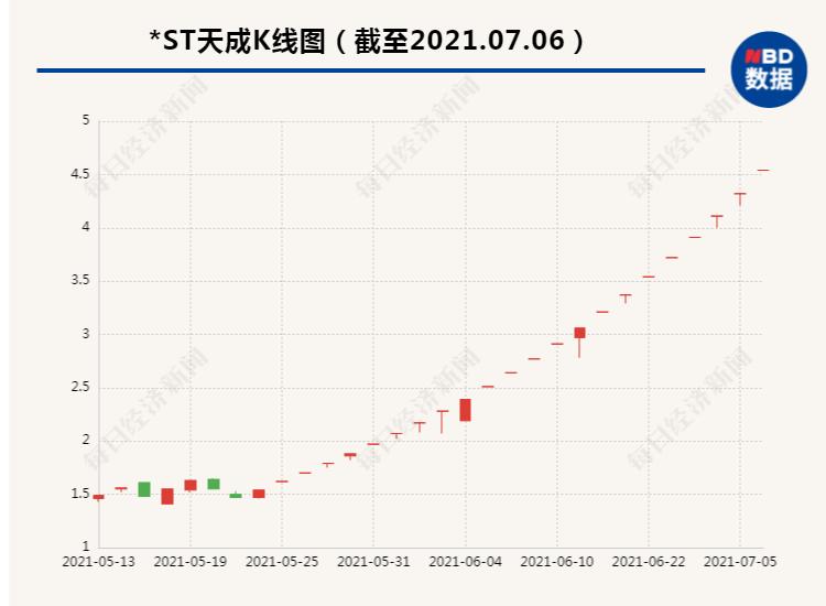 沾“酱”即涨大戏中,最为疯狂的是*ST天成,因为被传闻有酒企将借壳而连续涨停,从今年5月24日以来,*ST天成股价上涨超过200%。尽管6月初公司便一再澄清所谓酒企借壳传闻子虚乌有,但依然挡不住股价连连涨停的步伐。要知道今年2月,*ST天成还在“面值退市”的边缘徘徊。