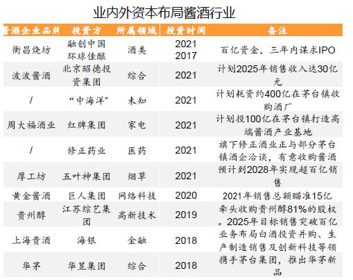 在资本市场上,资金对酱酒的热捧显而易见。在产业端,一些原本与酒毫无关联的热钱也纷纷涌入酱酒赛道。