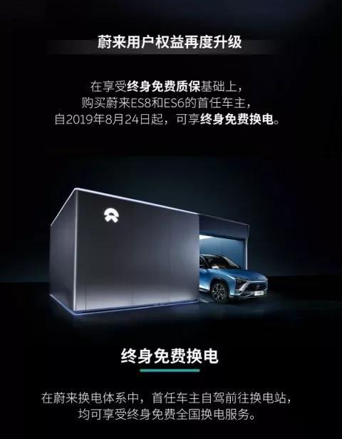 一直以贴心服务著称的蔚来汽车,为了将新老用户牢牢锁定在蔚来这个大家庭中,推出首任车主终身免费换电的服务。只要你成为蔚来首任车主,即可自驾前往任意营运中的换电站,享受终身不计次数的免费换电服务,该权益的使用次数不计入“能量无忧”服务包权益额度。面对价格不菲的电池,蔚来显然是祭出大招。