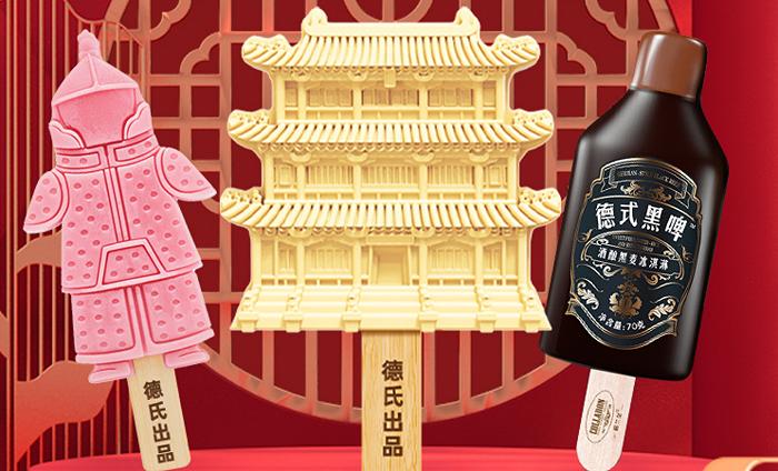 造型方面,伴随着文创雪糕走红,一些老牌也在借鉴和跟进,比如沈阳雪糕品牌德氏和沈阳故宫博物院推出了联名雪糕,包括凤凰楼、紫气东来等多个款式。