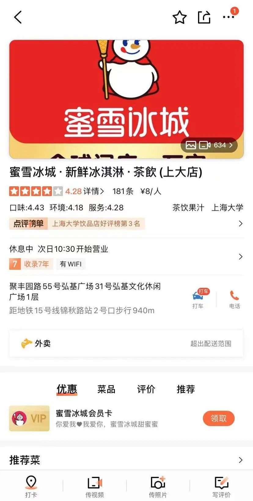 当越来越多大城市青年男女试着点上一杯蜜雪冰城的时候,他们并不知道,蜜雪冰城其实已经在他们身边存在了很多年。在大众点评录入的店铺中,在上海存在最久的蜜雪冰城上大店已经开了7年。在淮海路、陆家嘴等顶级商圈,都有蜜雪冰城的身影。