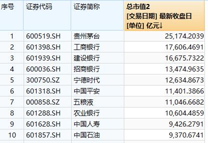 截至7月7日收盘,贵州茅台以2.5万亿元的市值位居A股榜首,工商银行和建设银行分居第二和第三位,两者的市值分别超过1.7万亿元和1.6万亿元;排名第四的是招商银行,市值为1.35万亿元;宁德时代排名第五。