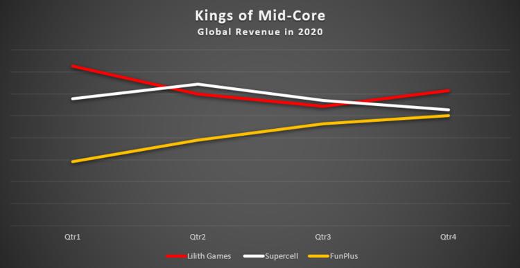 竞核曾在《中核游戏》系列报道中提到,刨去中日韩市场,2020年FunPlus营收增速令人印象深刻,Supercell跟莉莉丝营收相对稳定。