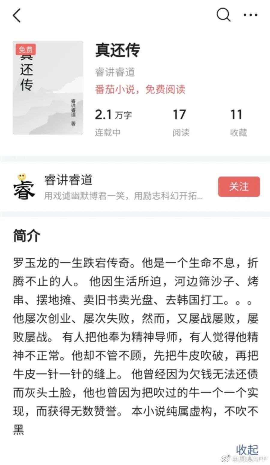 网友创作的《真还传》小说。图片来源:新浪微博@虎嗅APP