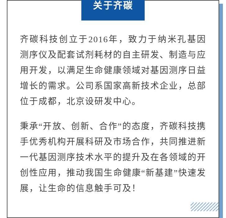 齐碳在顶尖创始团队的带领下搭建了交叉学科的高精尖技术研发团队,通过自主研发,技术攻坚,于去年9月成功发布纳米孔基因测序仪QNome-9604,突破了海外对单分子基因测序设备的垄断,成为目前国内唯一且全球唯二通过自主研发踏上纳米孔基因测序技术产业化之路的企业。凭借对硬核技术的全自主掌握和公司的稳步发展,齐碳科技先后斩获麻省理工科技评论2020年“50家聪明公司”、GEI2021中国潜在独角兽等荣誉。齐碳科技将继续发挥科技创新的基因,加速硬科技服务市场的步伐,让基因测序技术造福人类健康。