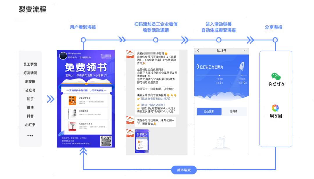 裂变海报是最常用的营销方式,让用户推荐用户,引导用户直接添加销售为好友。『企微裂变』可以帮助以科学的方式设置海报,并统计活动数据,识别出KOC客户重点运营。