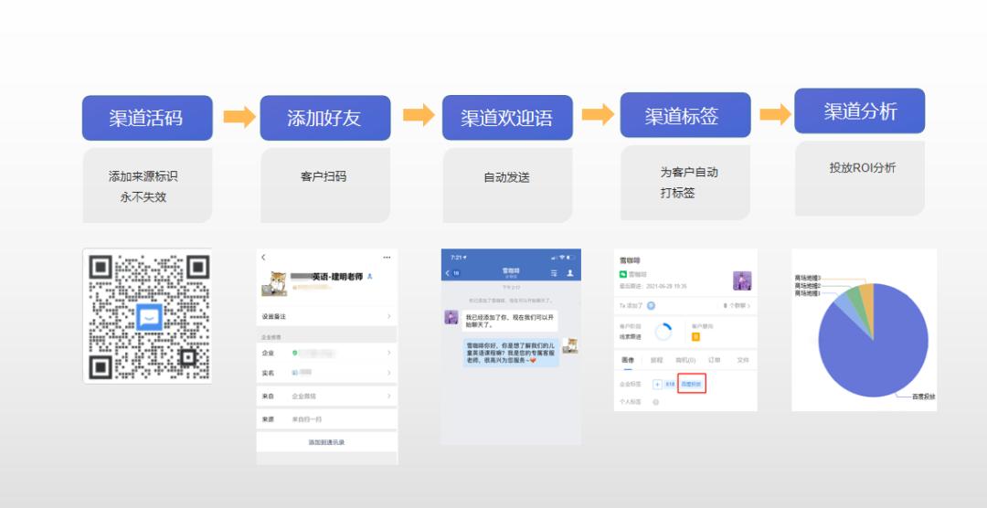 另外,渠道活码对有地推业务的公司大有助益,客户扫码添加业务员的企业微信后,后台可以识别出哪些客户是哪个地推人员推广过来,便于新增客户数统计。