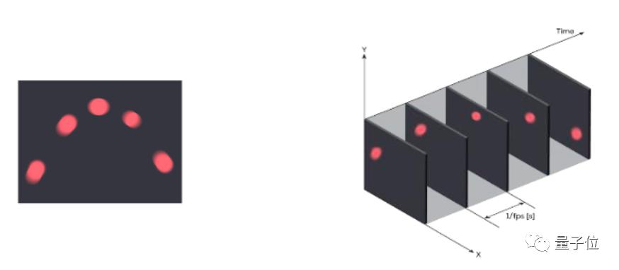但现在用基于事件的视觉技术,就能够在按快门的这段时间内一直观测这一点的移动,知道它的移动轨迹,再将这条线恢复成点。