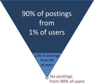 研究社交网络和在线社区的人发现了一个类似的规则来描述互联网上分享的信息。他们将其称为 “90/9/1规则”。