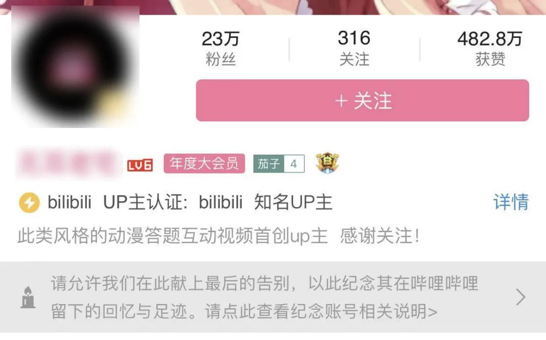 当一名B站用户逝世后,逝者的家属可以将它的账号申请为纪念账号。