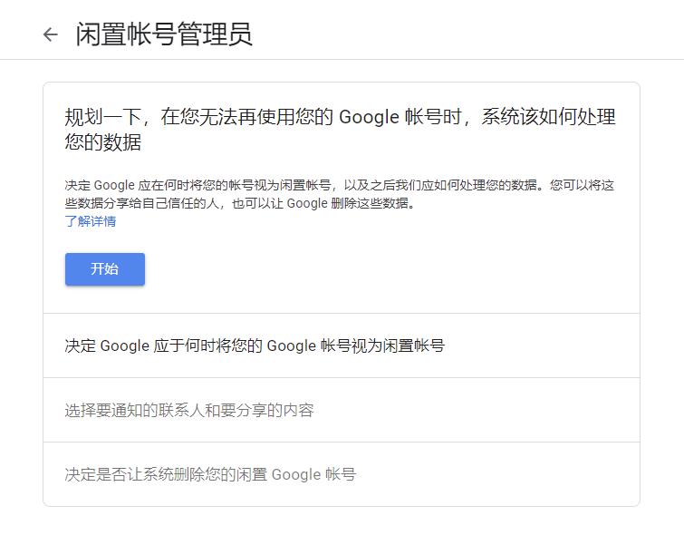 Google的设计与苹果类似,允许用户设置一段非活跃时限,假如用户超过该时限仍然没有使用Google账户,Google会发件询问用户是否打算停用账户。如果发件后一个月仍然没有回应,Google将启用账户停用流程,并将账户中的部分内容继承给用户提前指定的“继承者”们。微软也差不太多。