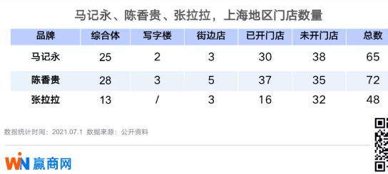 从门店选址来看,马记永、陈香贵、张拉拉三个品牌的营业门店中,购物中心店分别占比83%、75.6%和81.3%。