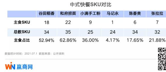 目前强势开跑的马记永、陈香贵、张拉拉都具备显眼的大招牌和明亮干净的用餐环境,用餐者不仅能够看到整个出餐过程,还能够通过小程序扫码点单。而从产品端来看,这些品牌也都在菜单中融入了小吃烧烤的产品线,并承诺免费续面。