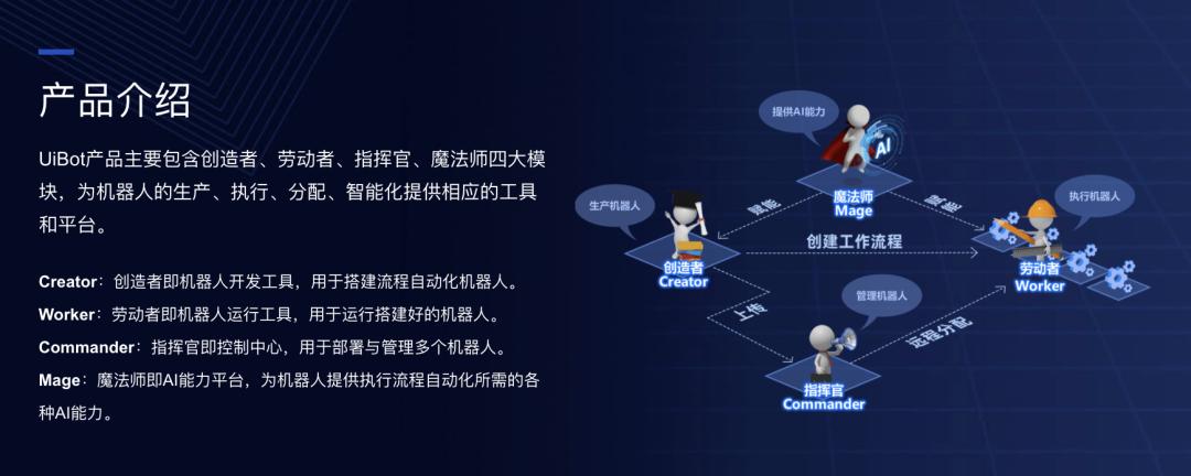 说是“机器人”,其实Uipath和它的RPA同行们并不会在客户企业里放置实体机器人,帮助用户的是一套可以模拟人类工作方式的程序,将员工从那些基于规则、重复但繁琐的业务流程中解放出来,从投入到更有价值和创造力的工作中。