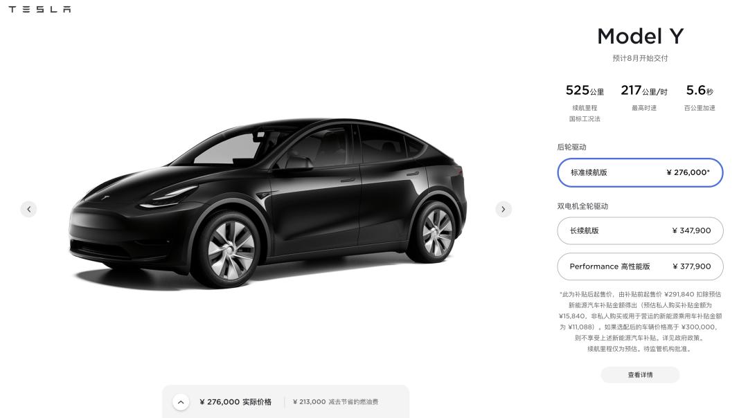 2021 年 7 月 8 日,特斯拉中国官网正式上线标准续航版 Model Y,尽管此前大家都深信标准续航 Model Y 的价格会低于 30 万,但当真正看到 27.6 万的售价时,我们还是不由自主地说出了那句「我 X」。