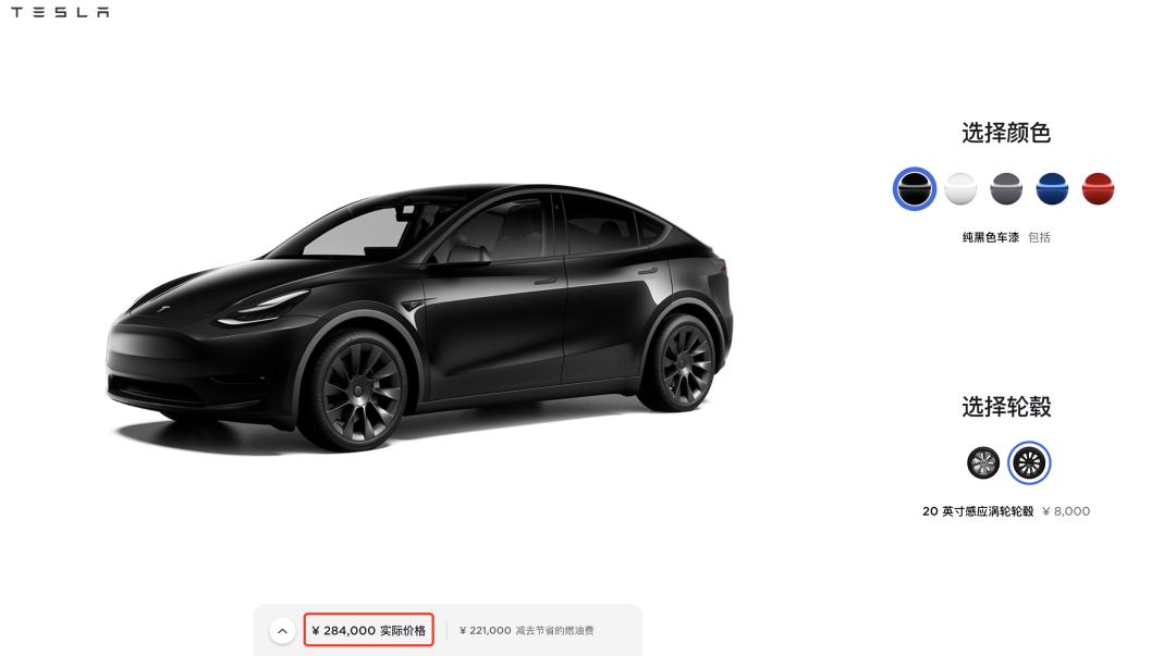 这个价格在私人购买的前提下可以拿到 15,840 元的补贴,补贴后售价也就是官网标价的 276,000 元。不过需要注意的一点是这个价格你只能买到黑色车漆、黑色内饰以及 19 寸低风阻轮毂的车型。