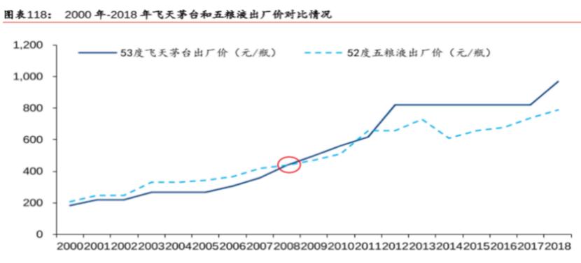 可以看出,五粮液真正被茅台超越是在2005年的净利润被超越之后,此时五粮液渠道和产品运营劣势开始显现,茅台价格虽然不如五粮液,但五粮液品牌力度被大量贴牌所稀释,大商制运行模式五粮液厂商定价权较弱,渠道低价窜货现象经常发生。而茅台在市场化改革后,通过小商制渠道模式推广,讲好品牌故事,以及产能的不断扩大,真正实现了量价齐升。