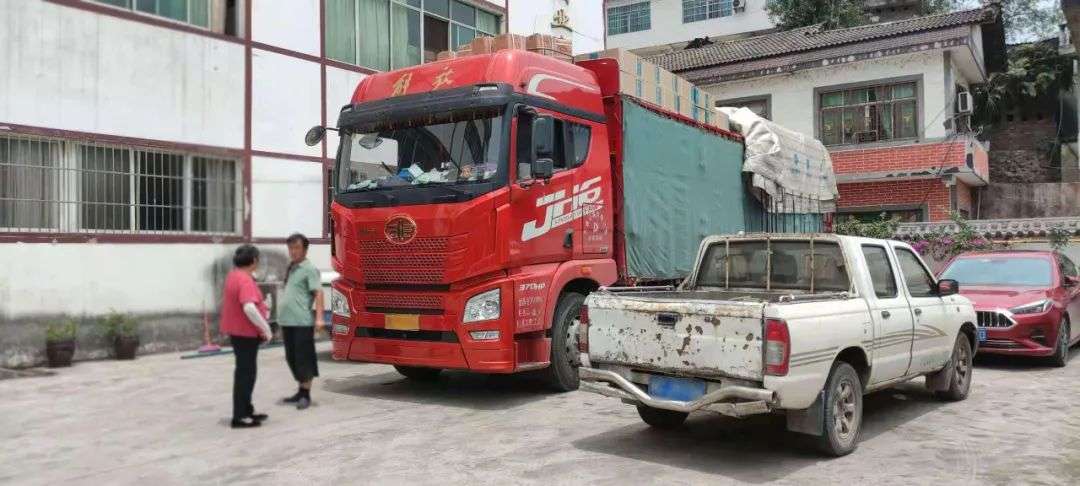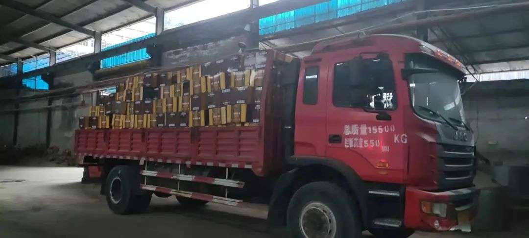从卡车上的包装盒的信息来看,生产企业写的是酒城酒业,出品企业为贵州和义烧坊酒业有限公司。简单来说,酒是酒城酒业生产的,而贴的品牌是和义烧坊的。