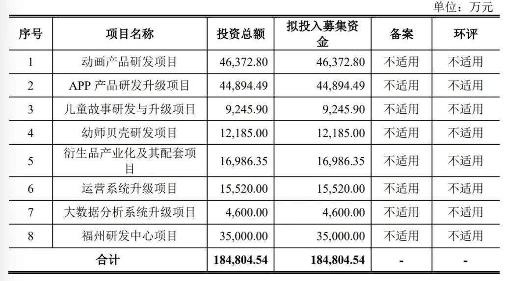 不过这并不代表着放弃布局,招股书显示,宝宝巴士拟募资1.7亿元投入衍生品产业化中来,意欲打通衍生品上下游产业链。