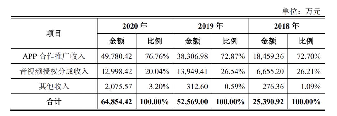 据招股书显示,宝宝巴士2018年、2019年、2020年实现营业收入2.54亿元、5.26亿元、6.49亿元,继2019年实现了收入的翻倍增长后,2020年的营业收入也保持在了20%的可观增速。