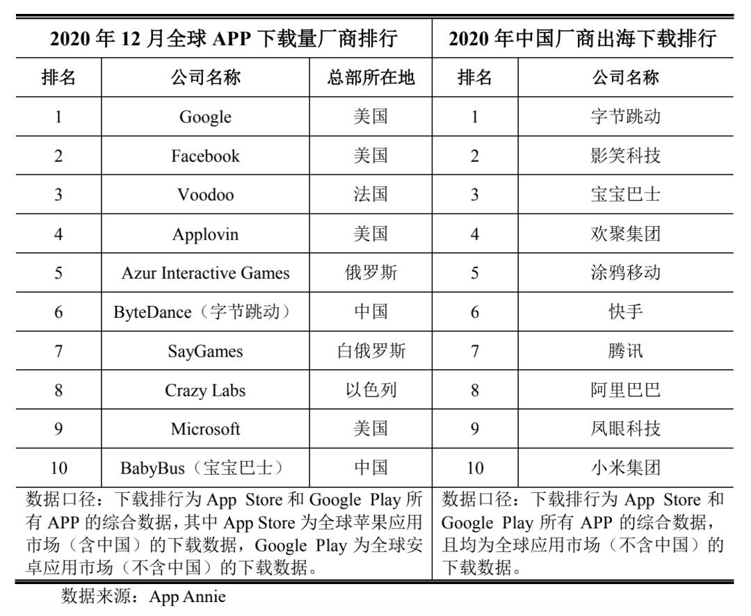 2020年底,宝宝巴士旗下应用下载量在App Store和Google Play的合并渠道居全球第十,值得注意的是,它是前十中唯二的中国企业,另一家是字节跳动。