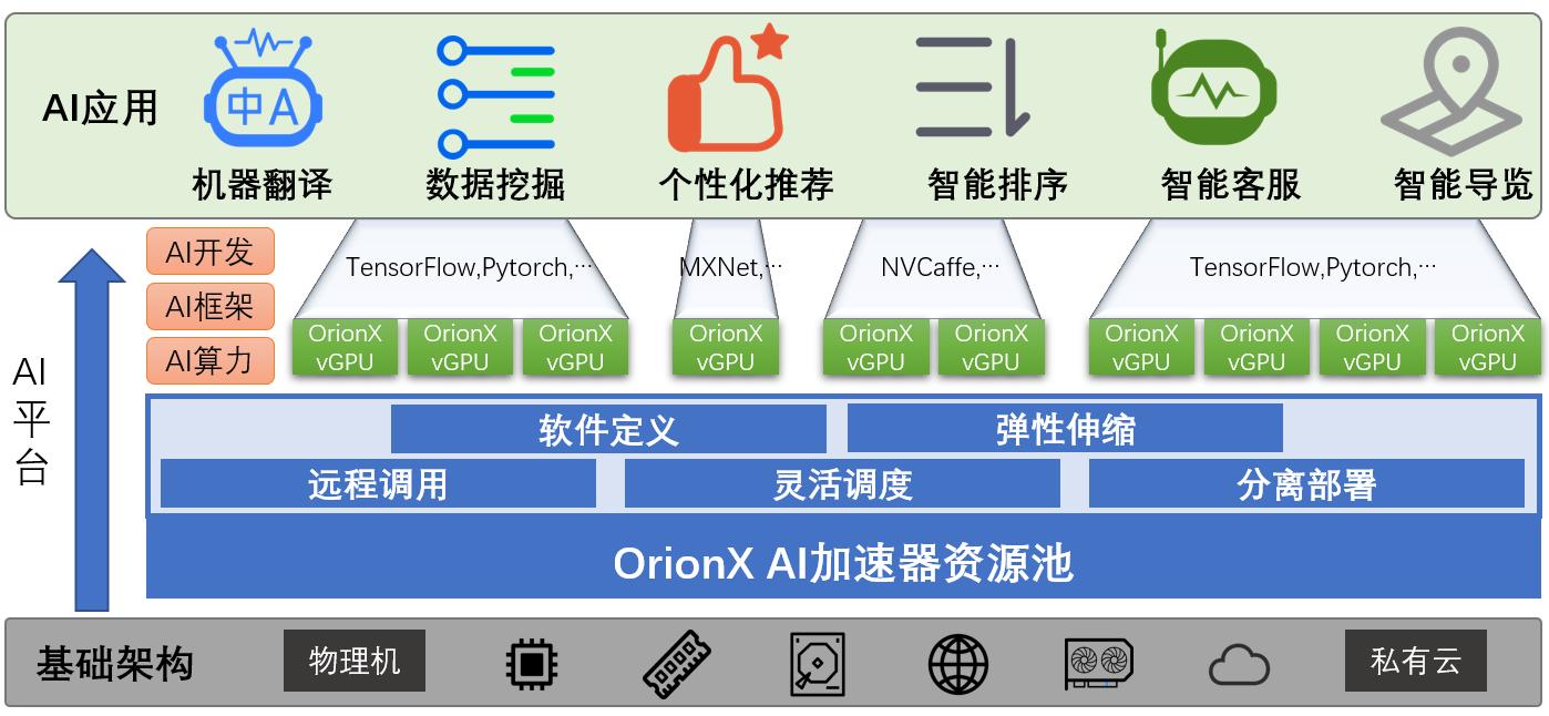 趋动科技的核心竞争力在于通过软件定义算力,改变了原有的AI应用直接调用物理算力资源的传统架构,将AI应用与物理算力资源解耦,不仅可以支持本地算力虚拟化,同时能打破资源调度的物理边界,让用户的应用无需修改代码即可透明地使用其他物理机上的远程算力资源。