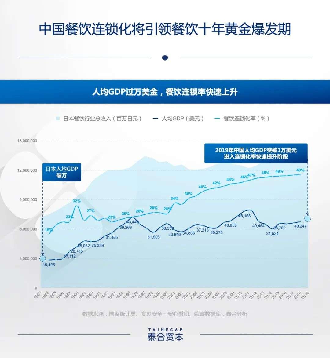 日本市场在上世纪80年代实现了人均GDP1万美元的突破后,餐饮连锁化率在接下来30年中迅速地从15%提升到接近50%。所以我们认为,这波餐饮投资与之前相比,有一个结构性的变化。