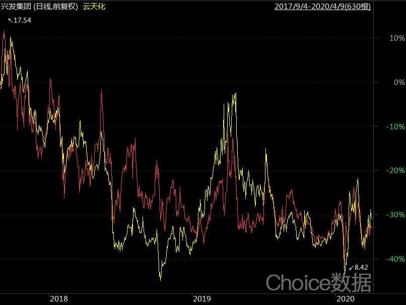 在一个需求长周期下行,供应长期过剩的市场中,行业龙头想要有惊人表现非常困难,无论是家里有磷矿的云天化(SH:600096),还是电子级磷酸技术领军的兴发集团(SH:600141),供需关系的长期低迷死死的压制了磷化工企业的市值表现。