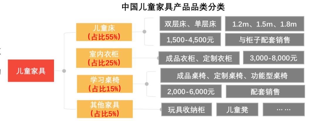 ·儿童衣柜、学习桌椅等分别排名第二和第三位,占比为25%和15%。