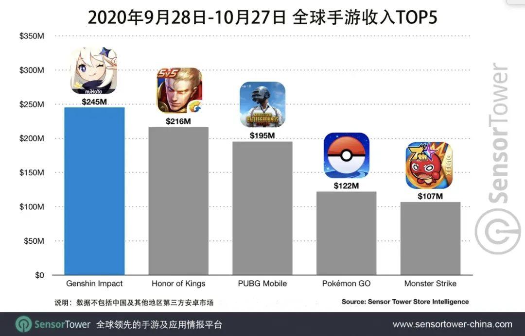 去年9月底,《原神》开启公测,主打概念是“开放世界的二次元手游”。据Sensor Tower数据显示,《原神》上线首月即吸金2.45亿美元,超越《王者荣耀》成为同期全球营收最高的手游,被看作是敲响腾讯游戏警钟的信号。