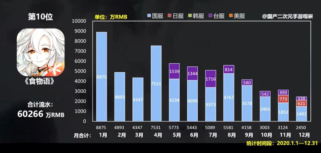 腾讯入股的深蓝互动,其创始人周剑是知名二次元女性向游戏《食物语》的制作人。在“国产二次元手游观察”统计的2020年度国产二次元手游流水排行榜中,《食物语》以6亿人民币的流水冲到了第十名,在同类别的游戏产品当中十分突出。