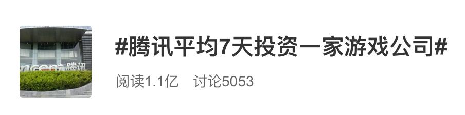近日,#腾讯平均7天投资一家游戏公司# 的词条上了热搜。