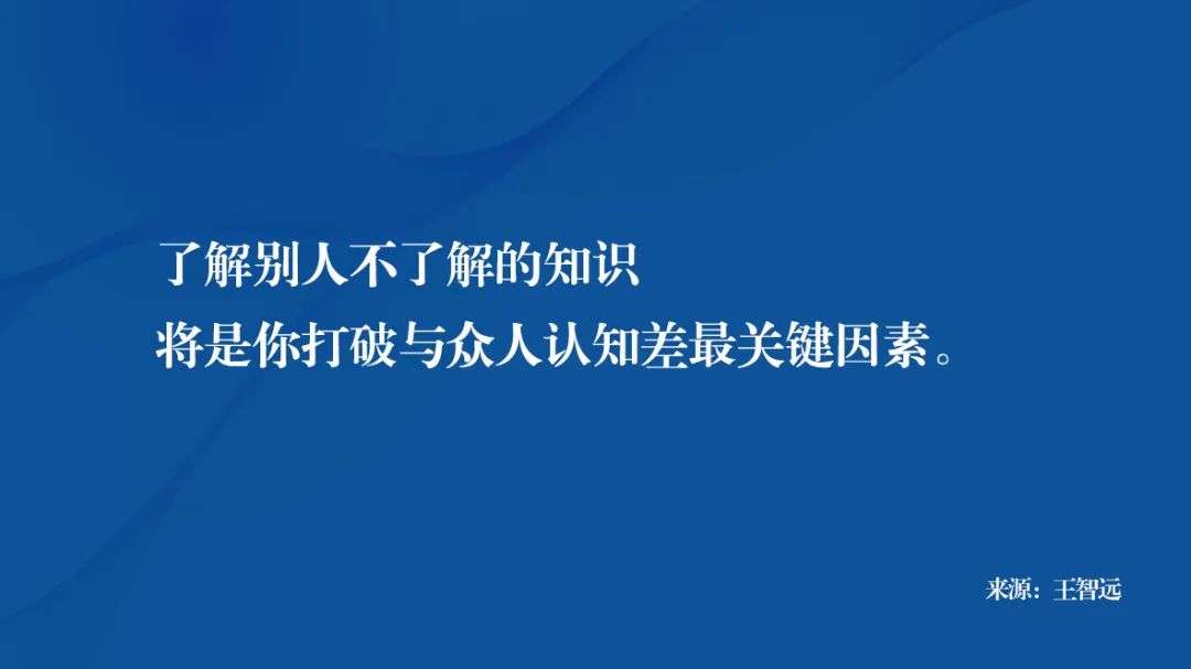 了解别人不了解的知识将是你打破与众人认知差最关键因素,也是区分彼此的有效手段,远比衡量财务更加有效。