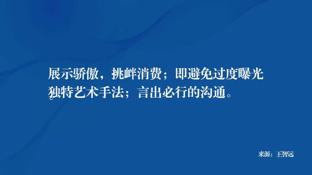 比如品牌可以用赞助商的身份参加到文化活动中,还可以用文化活动的发起者和参与者身份发挥着自己的作用,文化精英才是品牌的顶级目标客户,才是品牌需要保持密切联系和尊重的人。