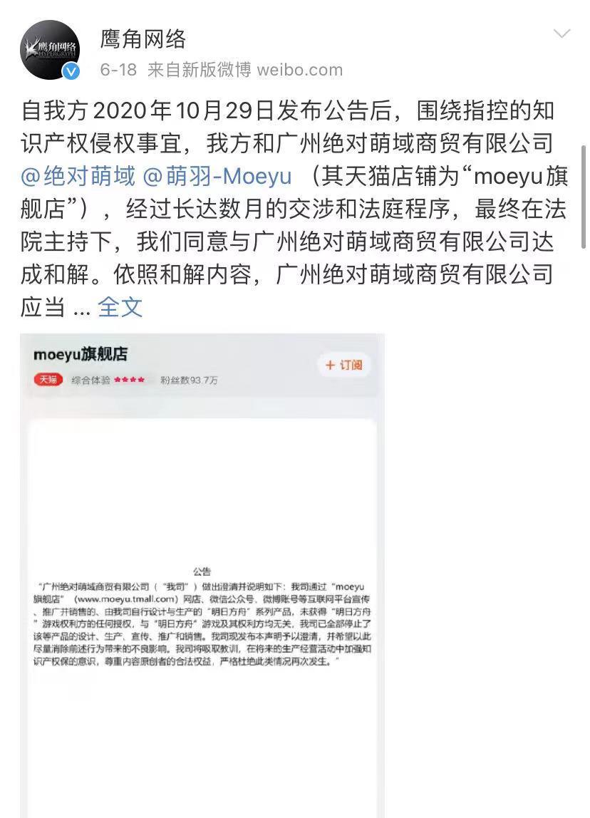 相反游戏公司拥有IP的绝对话语权,司法维权的手腕也逐渐成熟,因此近年来游戏厂商也在重视对周边侵权事宜进行法律诉讼,鹰角网络近期就在微博公布了其与“绝对萌域”的一场有关知识产权侵权的官司,成功打击了企图依靠盗版、侵权牟利的厂商。