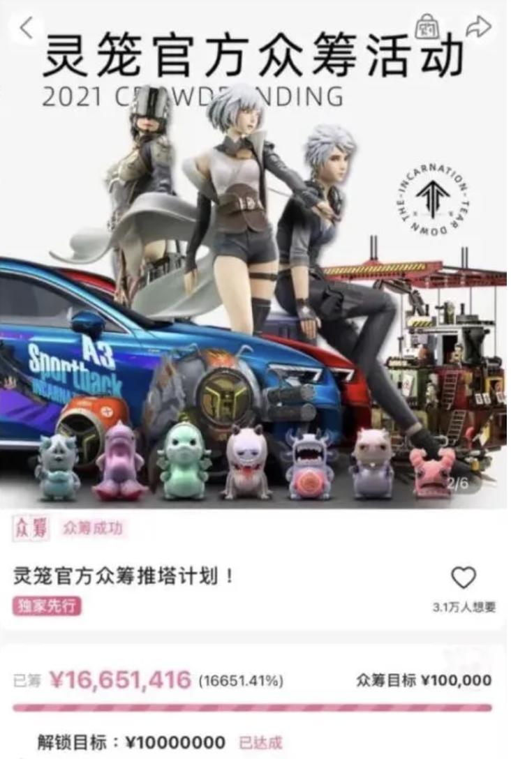 比如创作了国内同人圈一大热门作《凹凸世界》的七创社,又比如近期将国漫制作和剧情推向新高峰的《灵笼》制作团队艺画开天,后者在今年上半年官方众筹活动中更是卖出了价值1600万的周边商品。