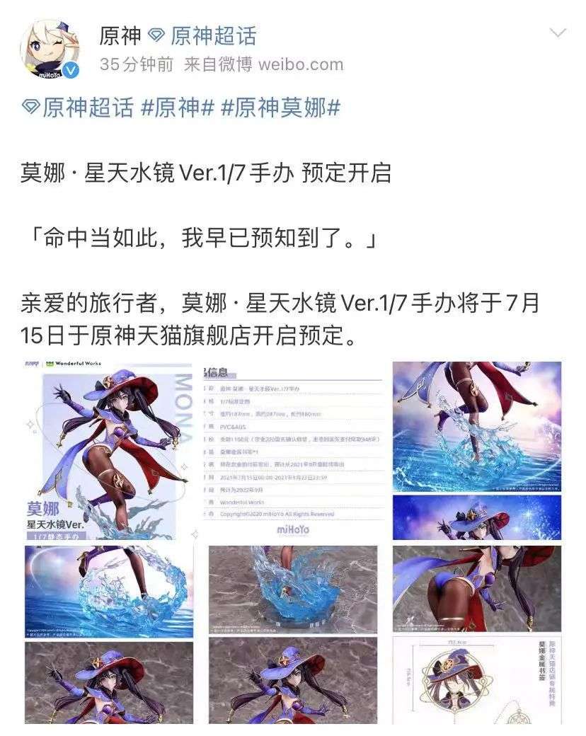 对这样有些“一反常态”的手办大生意,米哈游似乎看到了其中的商机,很快在今天又公布了一款手办「莫娜·星天水镜」,并将在7月15日开启预售,想必也会有不错的反响。