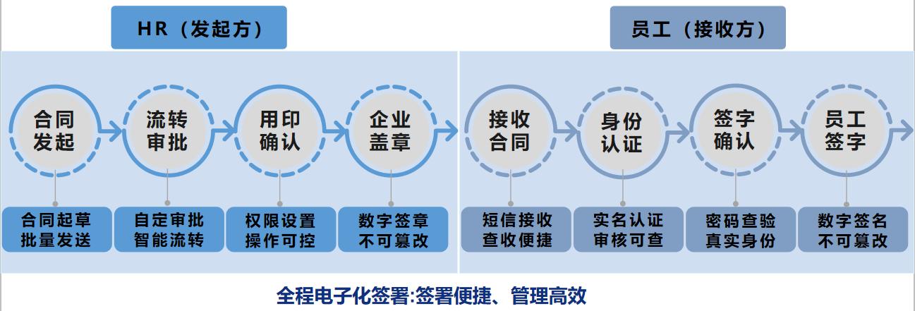 劳动合同作为双方关系的基础契约保障,是重要的签署文件,HR部门如何合规、高效的完成签署?员工的“入、转、调、离”全生命周期的劳动关系管理,HR部门如何高效、平稳地处理?异地主体公司用章,HR部门如何实现准确、权责清晰地核用、调用及管理印章?纸质合同产生的大量用纸、打印、邮寄、仓储等成本,HR部门如何减耗节能,为企业降本提效?